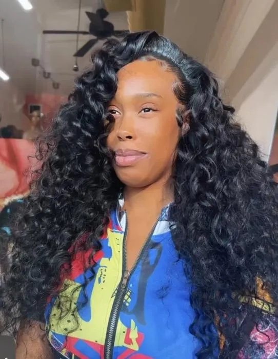 13x4 or 13x6 Transparent Frontal wig or Hd frontal wig but HD is the best! This syle comes with soft curls, bone straight flat iron and some layers if needed.